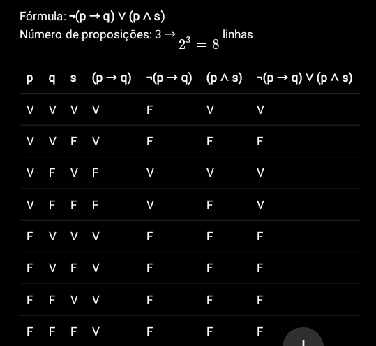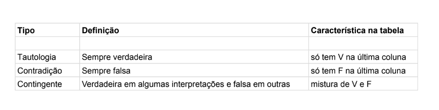 - Cada proposição pode assumir V (verdadeiro) ou F (falso).
